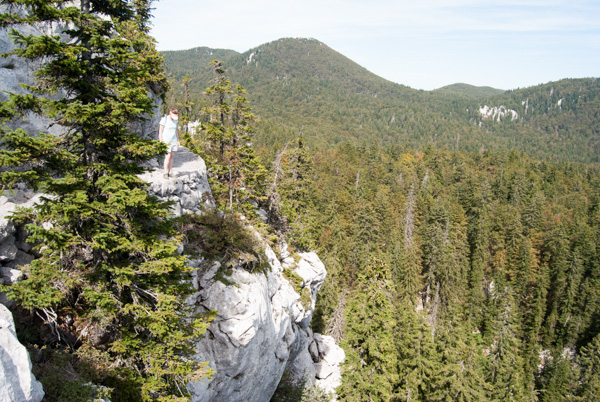 We left Zagreb in our little rental VW Up, Duncan desperately trying to remember to drive on the right, and frequently slamming his left fist into his side door every time he tried to change gears. We drove through beautiful countryside on windy roads to our destination, the Velebit National Park. A short walk from the car park brought us to the Botanical Garden; a far cry from planted flower beds, but wild and stark and beautiful. In the centre of the garden is a large sinkhole with a short trail around the edge, and diverging off this path are trails up the many surrounding 1600m peaks. We made our way up to the summit of Balinovac, and admired the views over the Adriatic and the barren islands adjacent to the coast.
