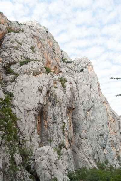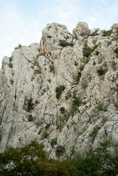 The next day, another national park; this time on our doorstep, and the initial reason for staying in this particular Starigrad. A short drive brought us to a spectacular gorge, with limestone cliffs towering above us on both sides. Paklenica is Croatia’s most popular climbing destination, and one day hardly did it justice. We hired a rope and some gear, and warmed up on some rather polished, well climbed easy routes, before crossing the narrow valley to do a 3 pitch multipitch climb, of just over 100m. Duncan climbed to the first set of anchors, while I belayed him from the ground. He then tied into the anchors and belayed me up. Then I tied in and belayed him up the second pitch, and we repeated this until we were both at the top of the climb.