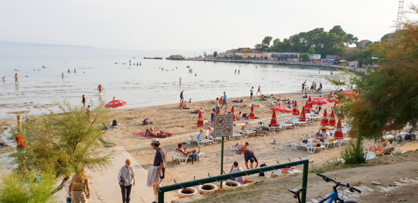 We then managed to find Bacvice beach, Split’s “best” “sandy” beach. Beaches in Croatia are described as rocky, pebble, shingle or sandy, the latter being the most desirable. The water is warm and shallow and clear but the beaches themselves are average at best, with a small patch of dirty sand crowded with people roasting themselves in the sun. There are no waves and seemingly no tides, so they are a bit boring, and we are rather spoilt.