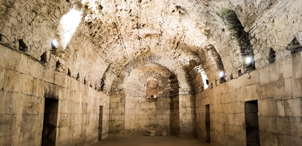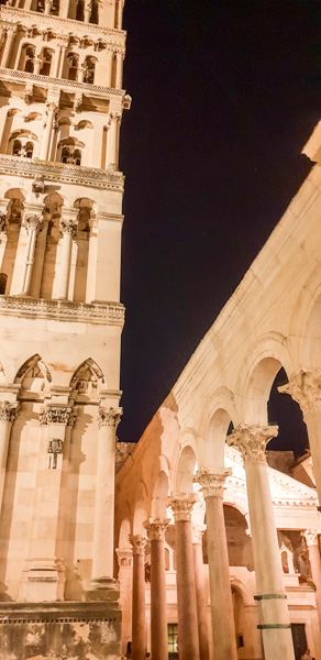 The old town of Split centres around the Diocletian Palace, built by the Roman Emperor in 295 AD, and transformed by subsequent generations ever since. Surrounded by high walls it is now a warren of apartments, shops, restaurants, museums, churches and squares; with a tangled maze of narrow alleyways. Under the palace, the basement was constructed to elevate the Emperor's apartments in order for him too have a better view and sea breeze. It perfectly mirrors the original floor plan of the palace above, and we explored the vast halls one evening after dinner.
