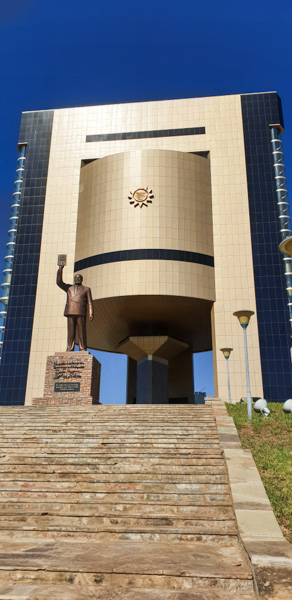 We packed up camp after a quick breakfast, and began our drive to Windhoek. We were happy to encounter gradually better and better roads, until finally we were on tar again, just in time for Friday afternoon peak hour traffic. We spent some of the afternoon in search of a new tyre, together with what seemed like the entire population of Windhoek. We then set about exploring town, and visited the Independence Memorial Museum, which would look at home in Pyongyang. It was a fascinating museum however, and showed a different history of Namibia to the colonial German history presented by the museum in Swakopmund. We popped in at the beautiful “gingerbread church” Christuskirche, and the very tired Owela museum, before winding down for the day with a walk through the botanical gardens and dinner at the famous Joe’s Beerhouse.