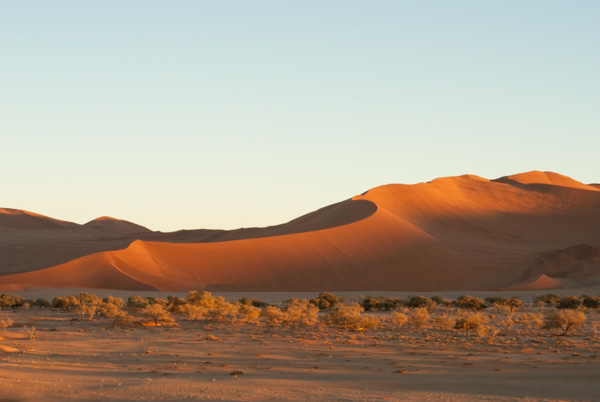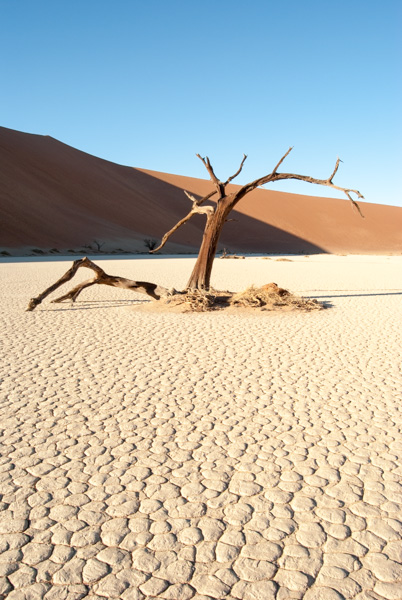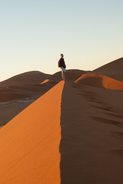 Another early start. We joined a long queue of vehicles at 6:15, waiting to enter the national park gates when they open an hour before sunrise. As the gates open, hoards of tourists in their rental 4x4’s race down 60km of tar road in an attempt to get to the end first, and we assume, get the best sunrise photos. We took a more leisurely pre-dawn drive, and parked at the end of the tar road, from which you can only proceed with a 4x4 through the last 6km of very thick sand. Reluctant to get the car stuck, we set off on foot into the desert, vaguely following a hand painted sign to Hiddenvlei. We watched a beautiful sunrise from amongst the dunes, devoid of any other people, and eventually stumbled on the amazing vlei after about 2km of walking.