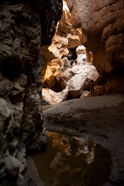 We drove back to camp for a swim and waited out the heat of the day in the shade, and then spent the rest of the afternoon exploring Sesriem canyon. Almost invisible from ground level, the canyon has been carved into the ground by water flowing through sedimentary rock over millions of years, and has a small permanent rock pool at one end which offers respite to many of the animals in the area.